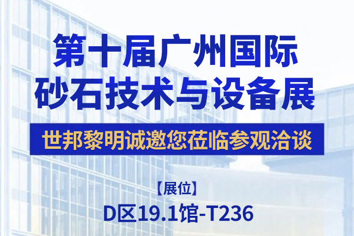 世邦黎明诚邀您莅临第十届广州国际砂石技术与设备展,展位:D区19.1馆-T236,时间2024.9.23-25,地址:广州·中国进出口商品交易会展馆
